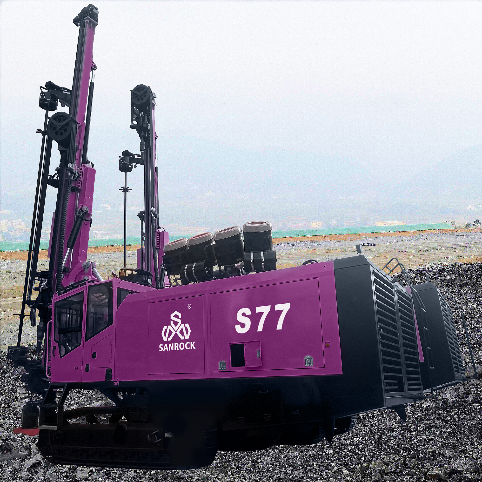 S77 è un impianto di perforazione idraulico DTH All-In-One, dotato di doppi motori cicloidi in grado di produrre una coppia massiccia e ridurre la possibilità di situazioni di blocco dei tubi.E la velocità di rotazione può essere continuamente regolata in base alle diverse formazioni rocciose.Il compressore d'aria ad alta potenza Atlas Copco è dotato di due fasi di compressione:potente e realizzabile.